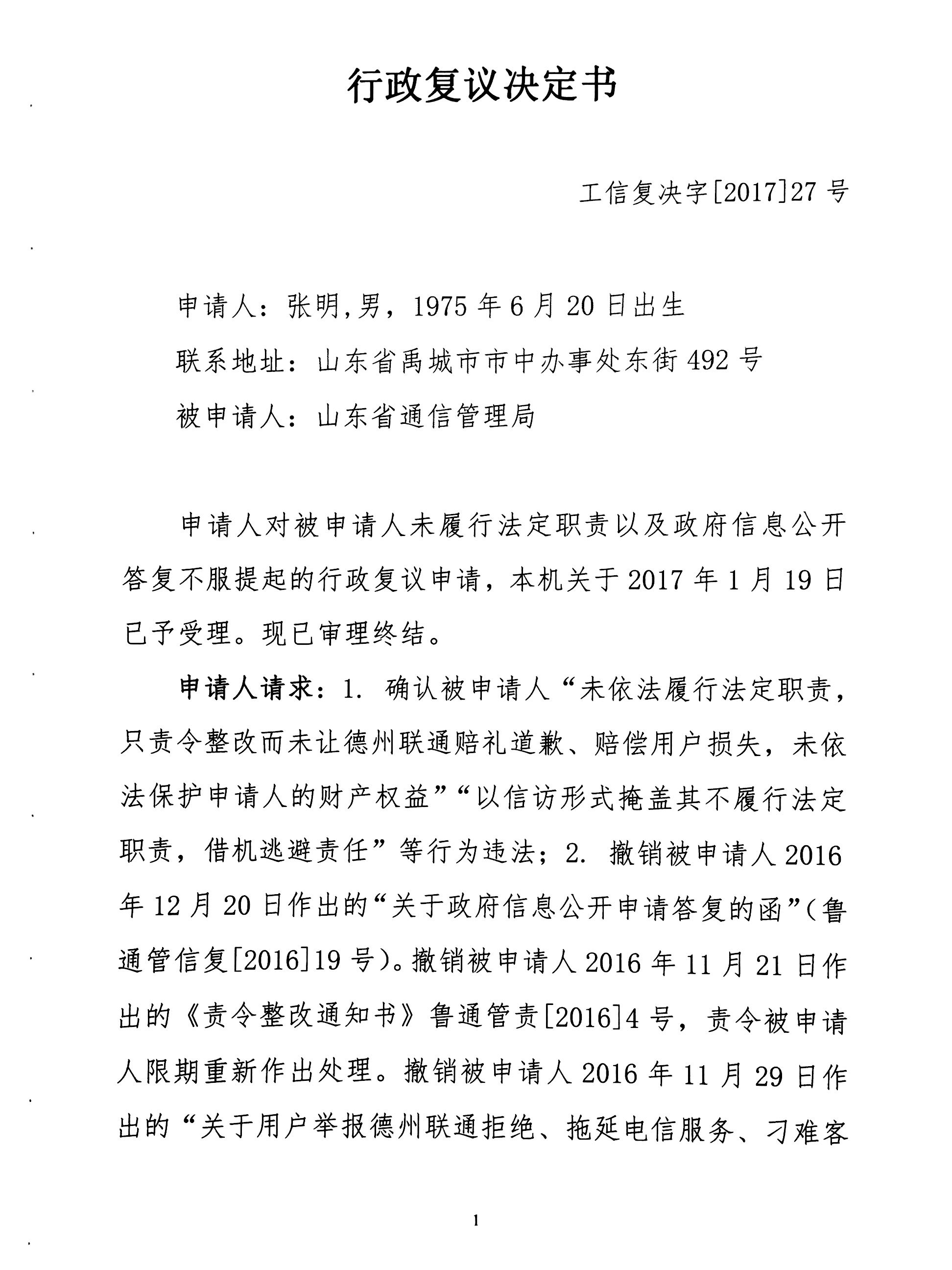 工信复决字[2017]第27号我部行政复议机构于2017年3月14日在法定期限内向申请人张明作出《行政复议决定书》(工信复决字[2017]第27号)。我机构在法定期限内使用中国邮政特快专递向申请人张明提供的文书送达地址投递法律文书被退回。现依法向申请人张明公告送达《行政复议决定书》(工信复决字[2017]第27号),自公告之日起满60日即为送达。