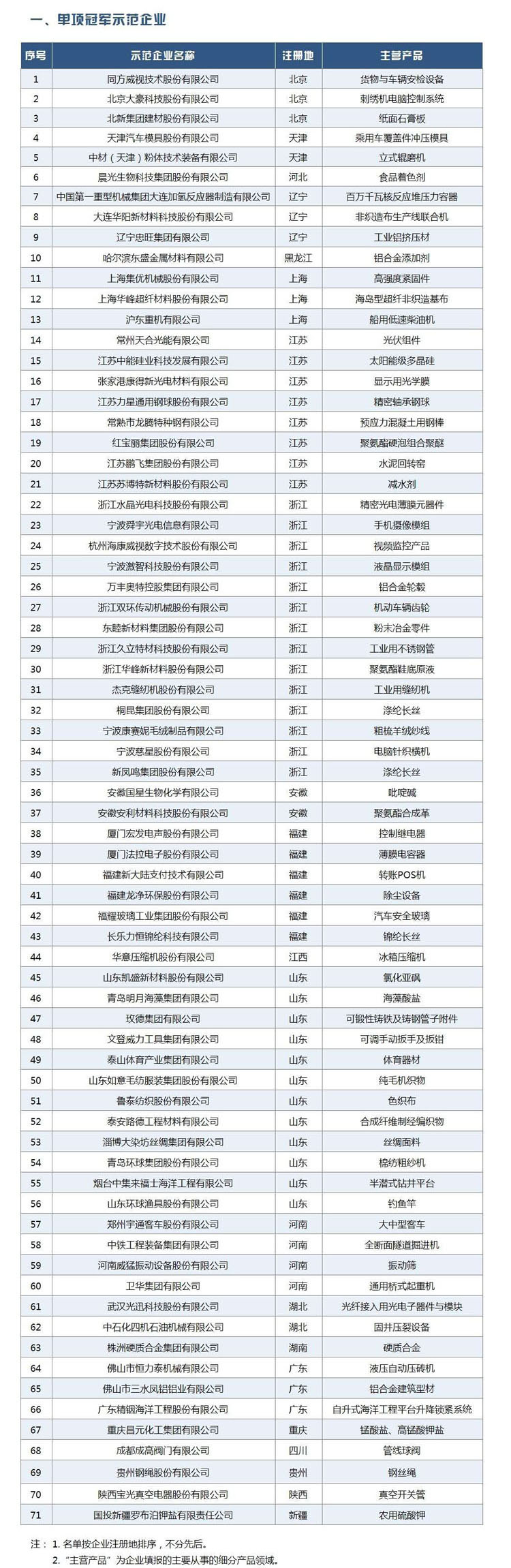 附件:第二批制造业单项冠军企业和单项冠军产品名单