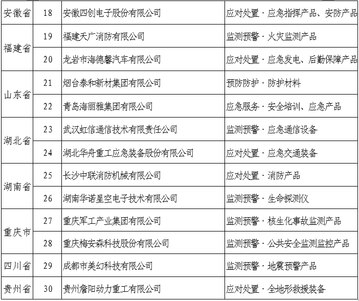 首批国家应急产业重点联系企业名单