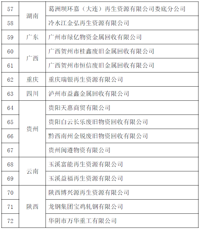 河南格林美资源循环有限公司等3家已公告企业,变更其公告企业名称,一并予以公告。