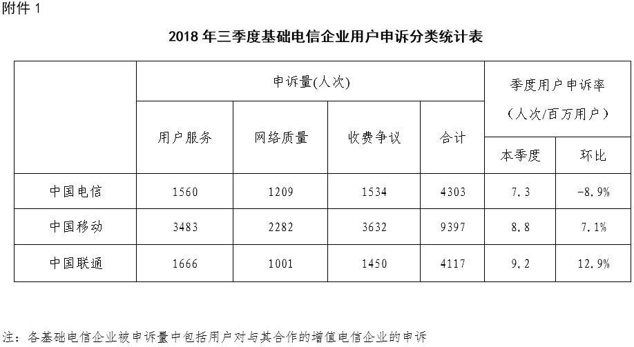 为推进电信服务质量持续改善,根据《中华人民共和国电信条例》相关规定,现将2018年第三季度电信服务有关情况通告如下: