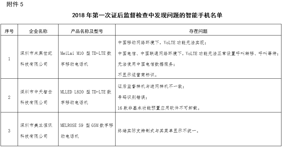 5.2018年第一次证后监督检查中发现问题的智能手机名单