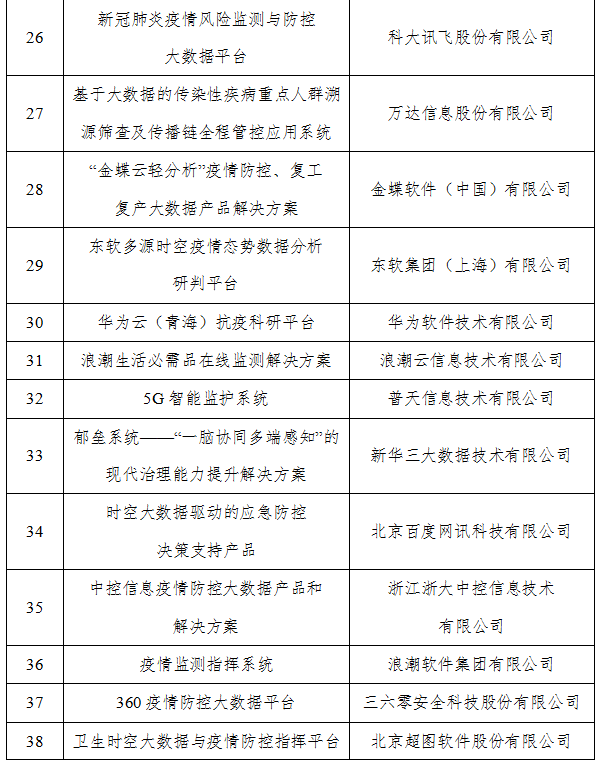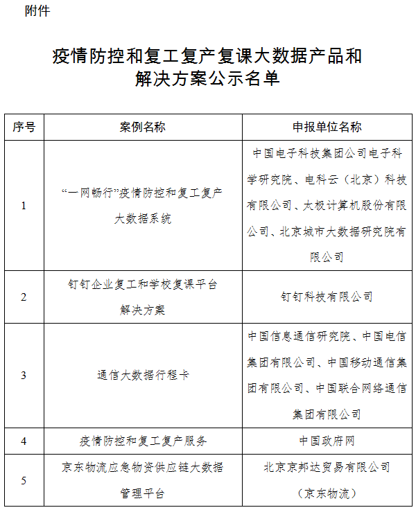 附 件:疫情防控和复工复产复课大数据产品和解决方案公示名单.doc