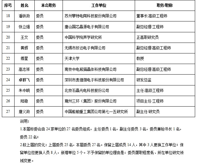 根据国家标准化管理委员会的批复,有关单位提出了全国频率控制和选择用压电器件标准化技术委员会换届方案。为进一步听取各方意见,现将委员名单予以公示,截止日期2020年8月7日。如有不同意见,请在公示期间将意见反馈至工业和信息化部科技司,电子邮件发送至KJBZ@miit.gov.cn(邮件主题注明:全国频率控制和选择用压电器件标准化技术委员会换届方案公示反馈)。
